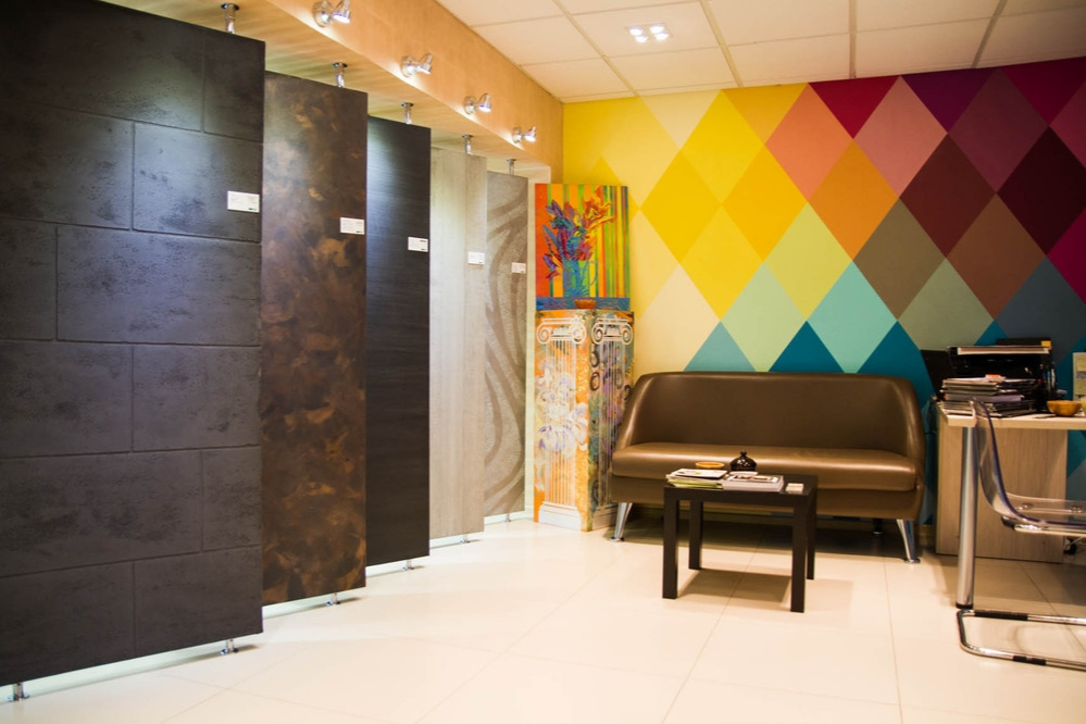 Офис продаж представлен двумя залами. Здесь можно не только ознакомиться с образцами стеновых и кровельных материалов лучших производителей России и Европы, но и получить информацию по устройству стен и кровли, просчитать материалы, изучить расценки на проектирование и обустройство участка, а также бесплатно проконсультироваться со специалистом по операциям с недвижимостью.